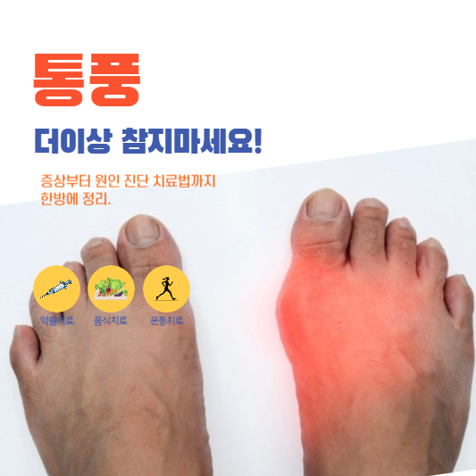 통풍은 요산이 몸 밖으로 빠져나가지 못하고 체내에 과도하게 축적되어 생기는 병으로 관절의 연골, 힘줄, 주위조직에 날카로운 형태의 요산결정이 침착되어 조직들의 염증반응을 촉발시키는 병입니다. 속칭 바람만 스쳐도 아파서 통풍으로 불리며 걸려본 사람만이 고통을 짐작할 수 있을 만큼 통증이 심한 생활 질환 중 하나입니다. 말로 표현 못할 고통에 조금이라도 도움이 되었으면 좋겠습니다.